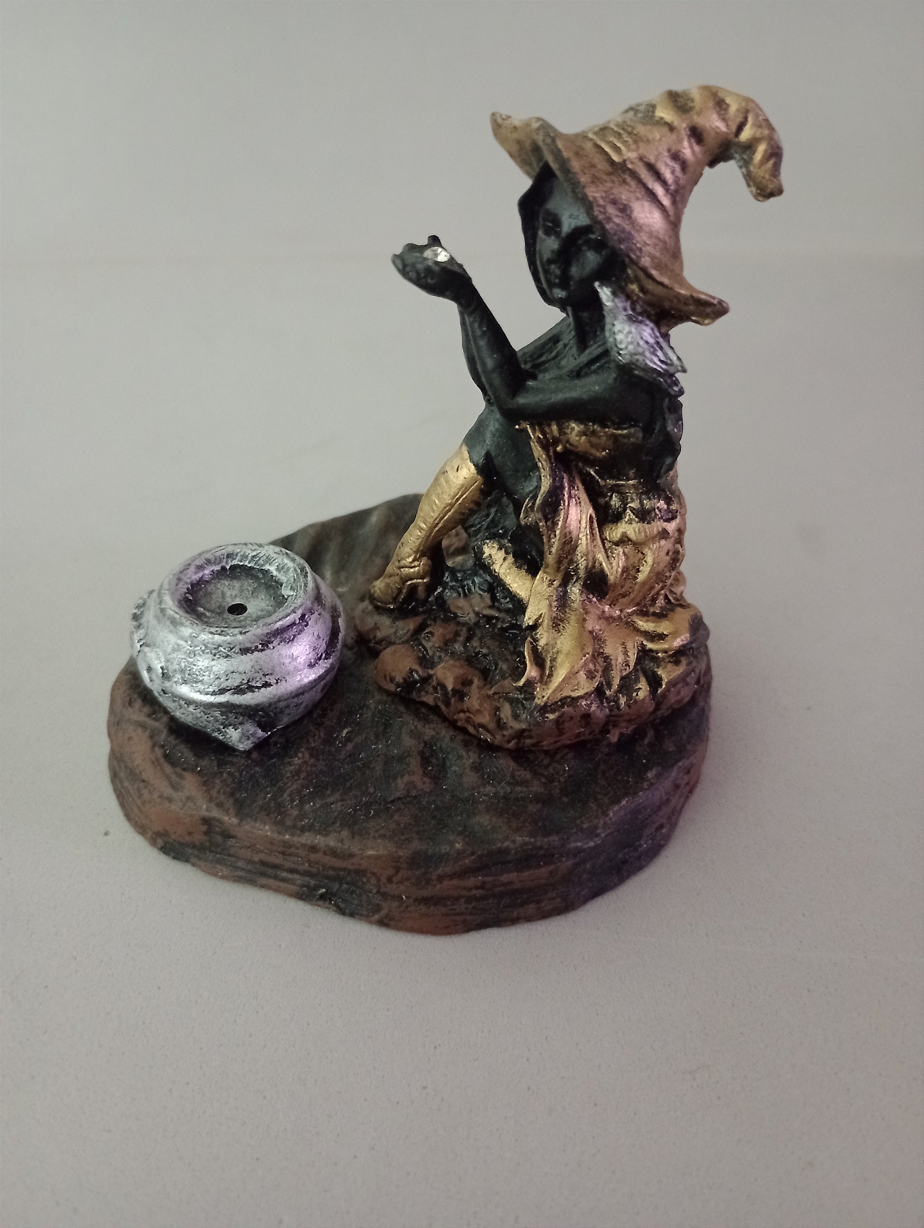 Incensário bruxinha com caldeirão de resina.